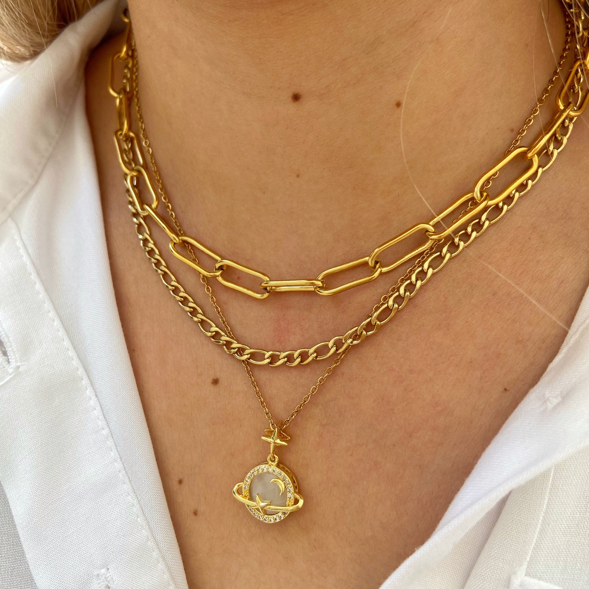 Si te encantan los layering amaras este conjunto con 2 cadenas basicas y collar Halley, perfecto para cualquier ocasión y súper combinable ¡Lo querrás usar siempre!