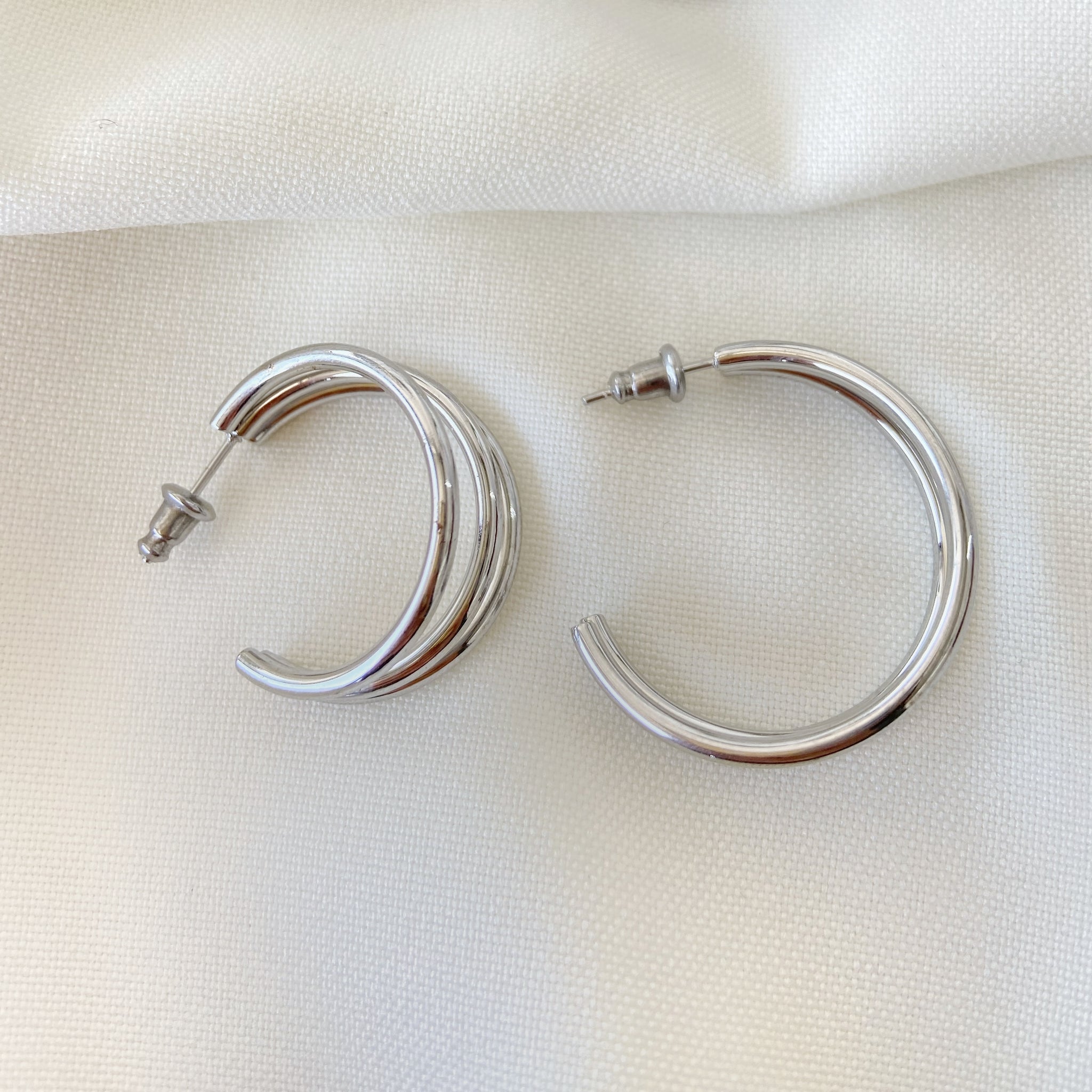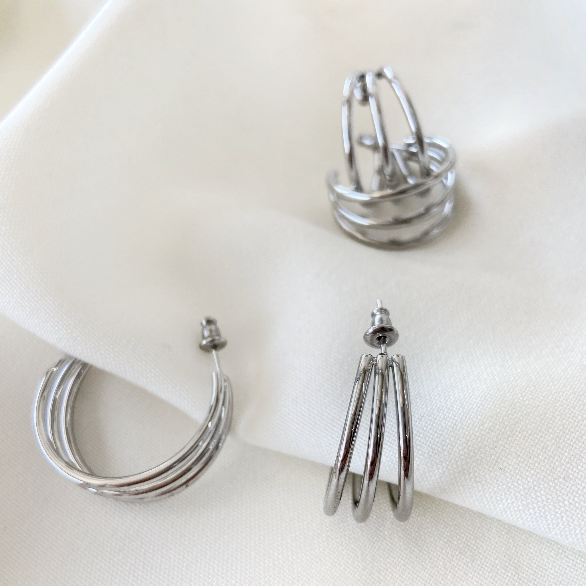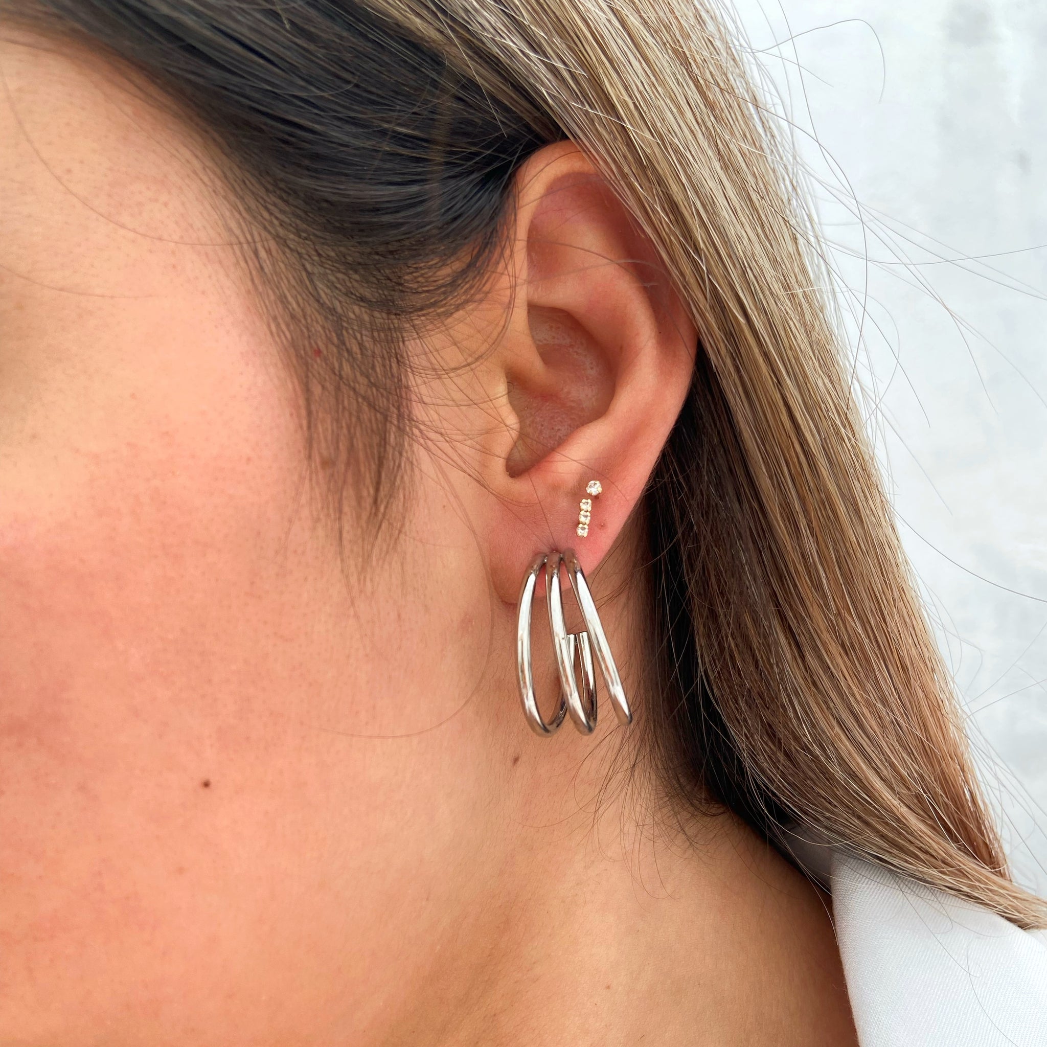 Arracada triple plateado, un accesorio básico y súper combinable que irá perfecto con tus outfits, ¡Justo lo que necesitas en tu vida!
