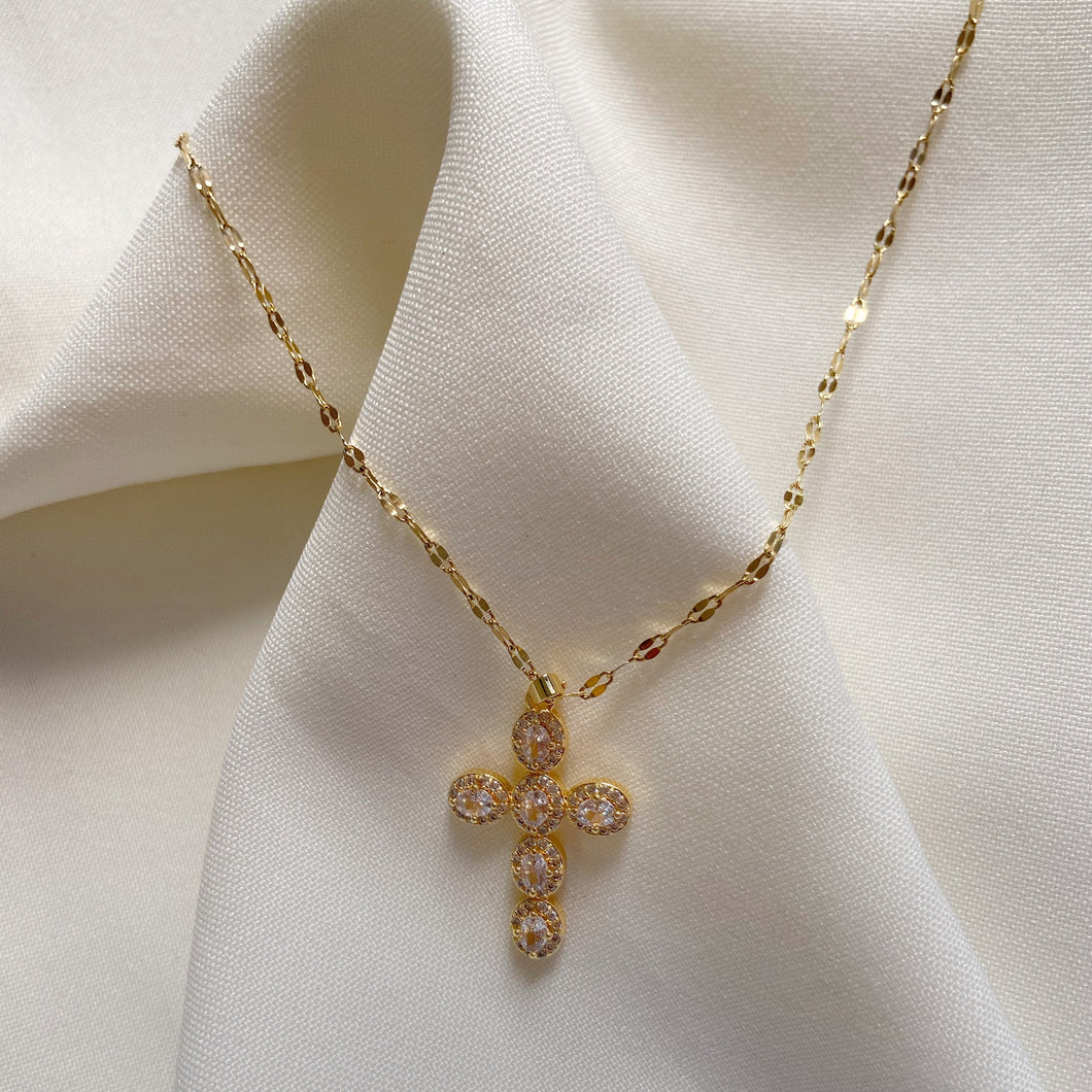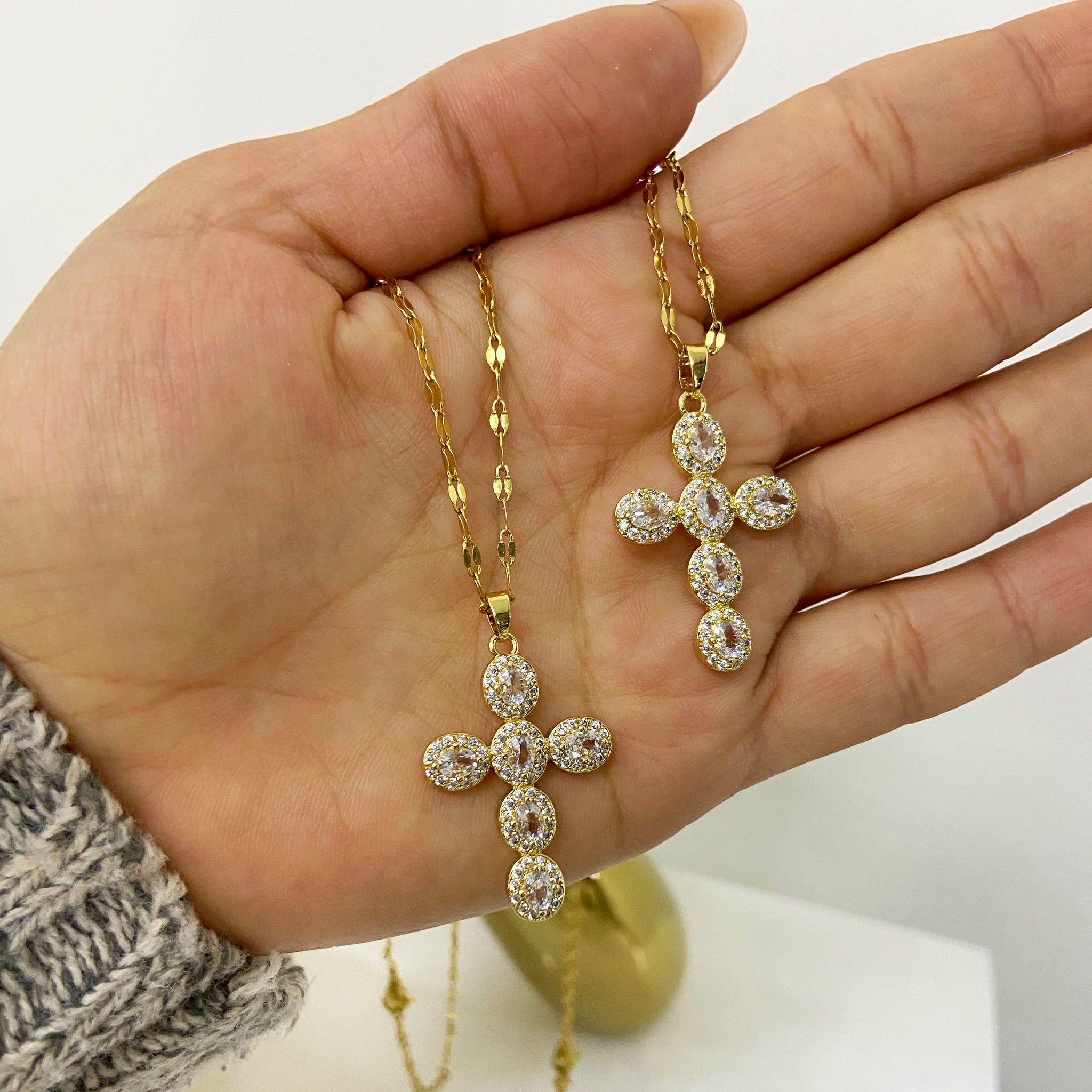 Collar con cruz con zirconias incrustadas, amaras lo detallado que es y su belleza.