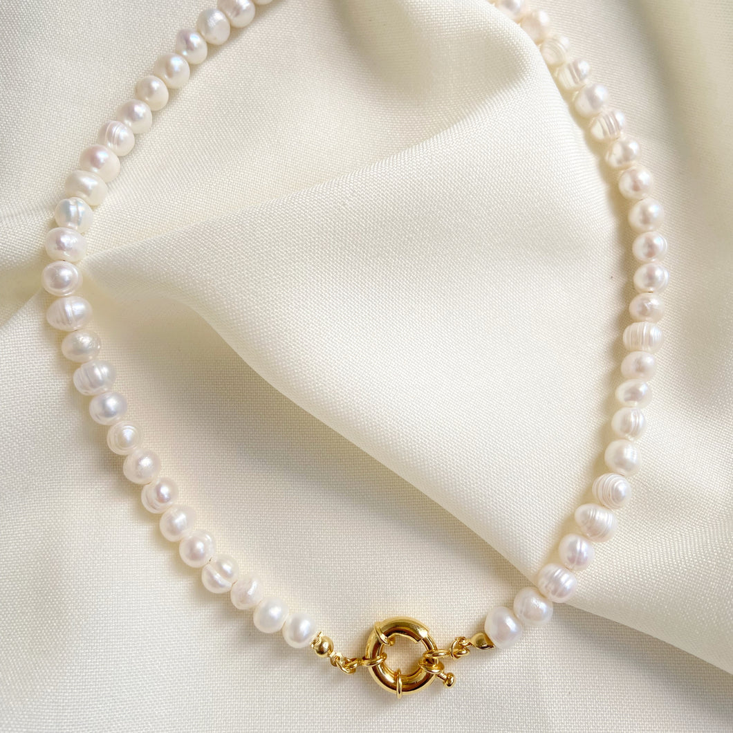 Collar con perlas de río y broche de marinero en el centro, un accesorio elegante, atemporal y trendy, ¡Estamos seguras que se volverá tu favorito!