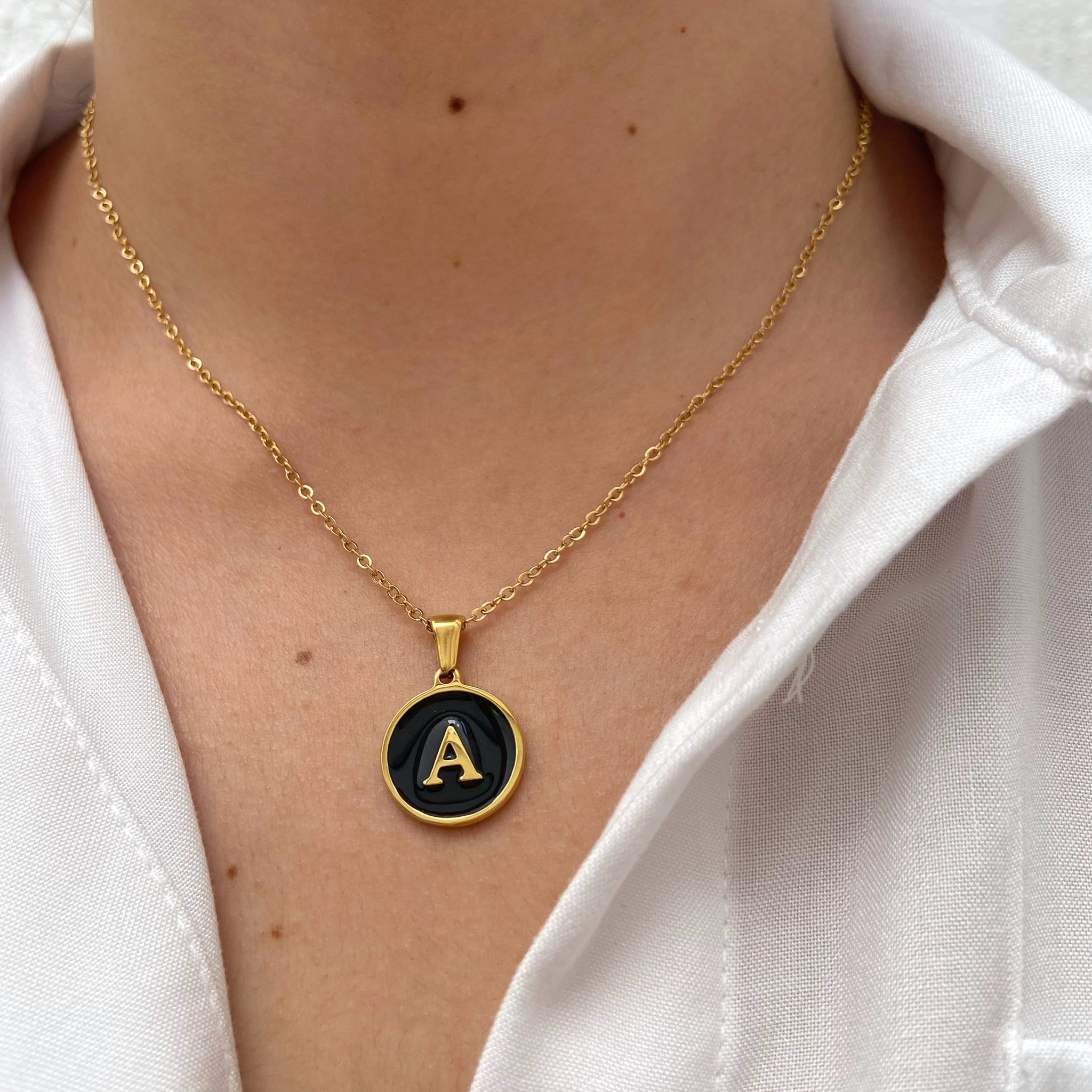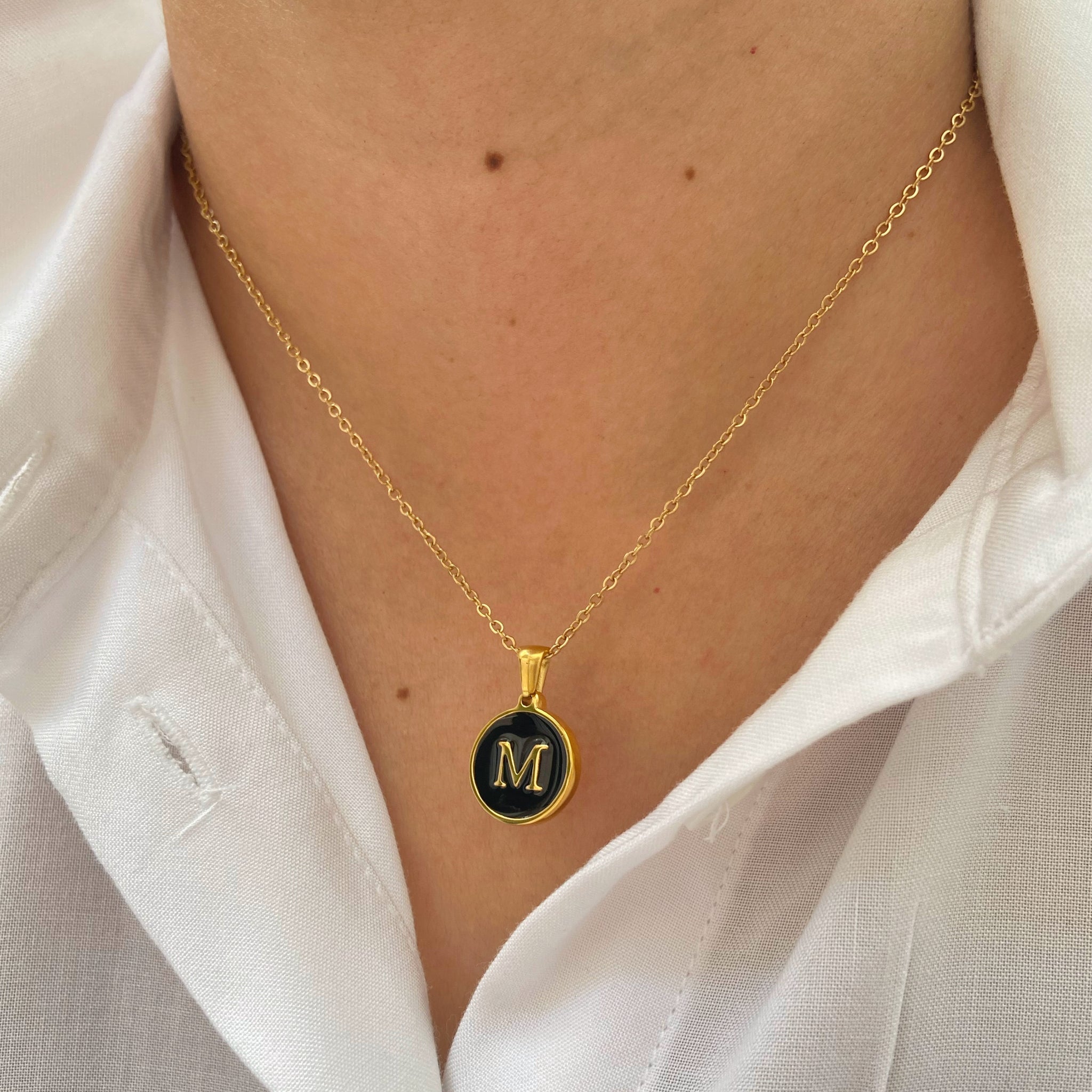 Collar con inicial de madre perla negra, un accesorio esencial en tu alajero, perfecto para tu día a dia o para regalarlo, ¡Te enamoraras de el!